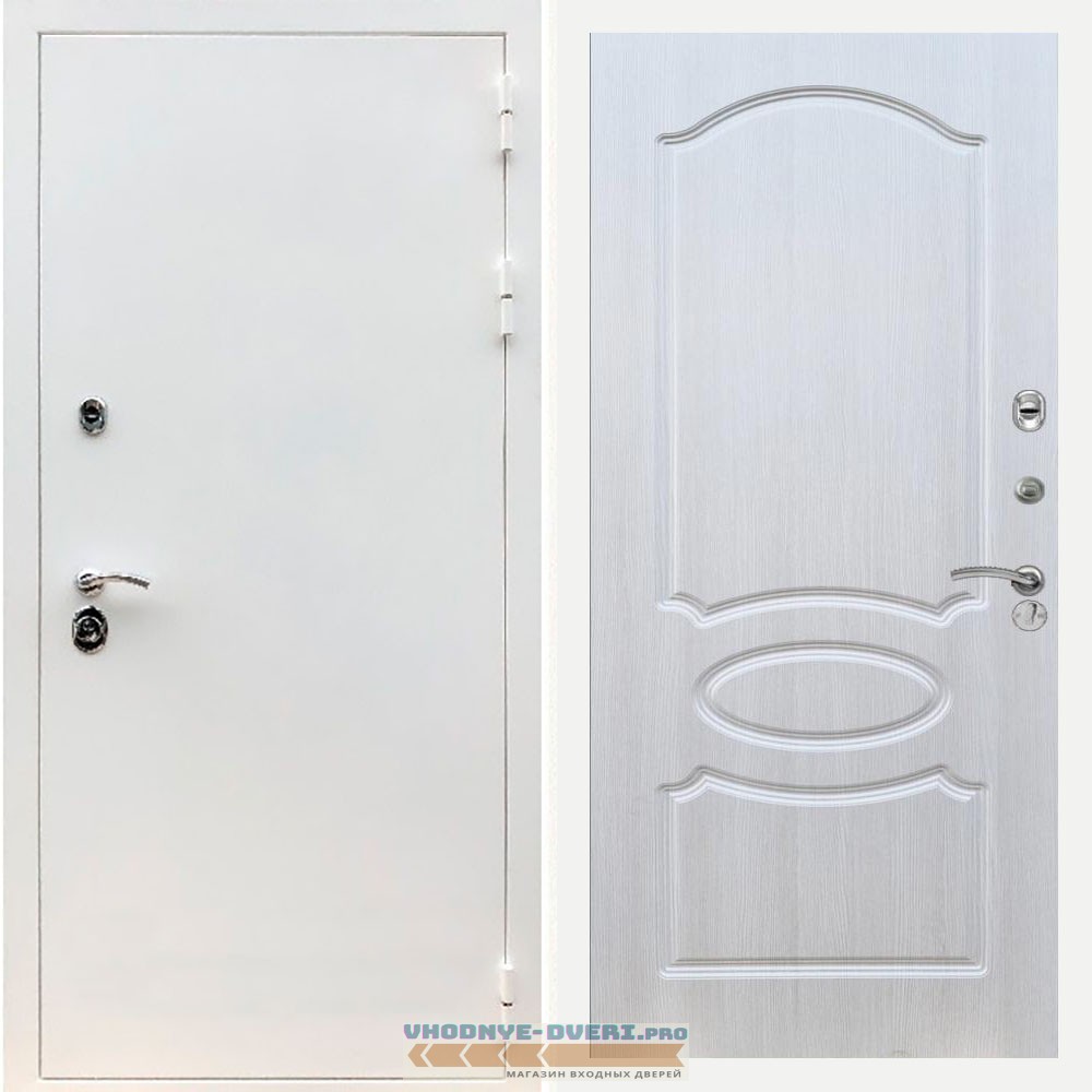 Входная дверь REX (Рекс) 5 белая шагрень ФЛ-128 Лиственница бежевая