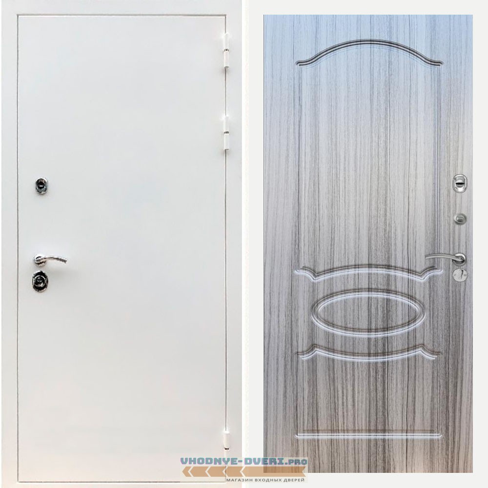 Входная дверь REX (Рекс) 5 белая шагрень ФЛ-128 Сандал серый