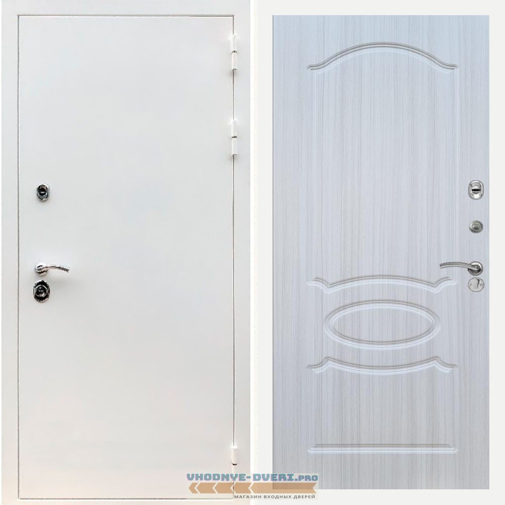 Входная дверь REX (Рекс) 5 белая шагрень ФЛ-128 Сандал светлый
