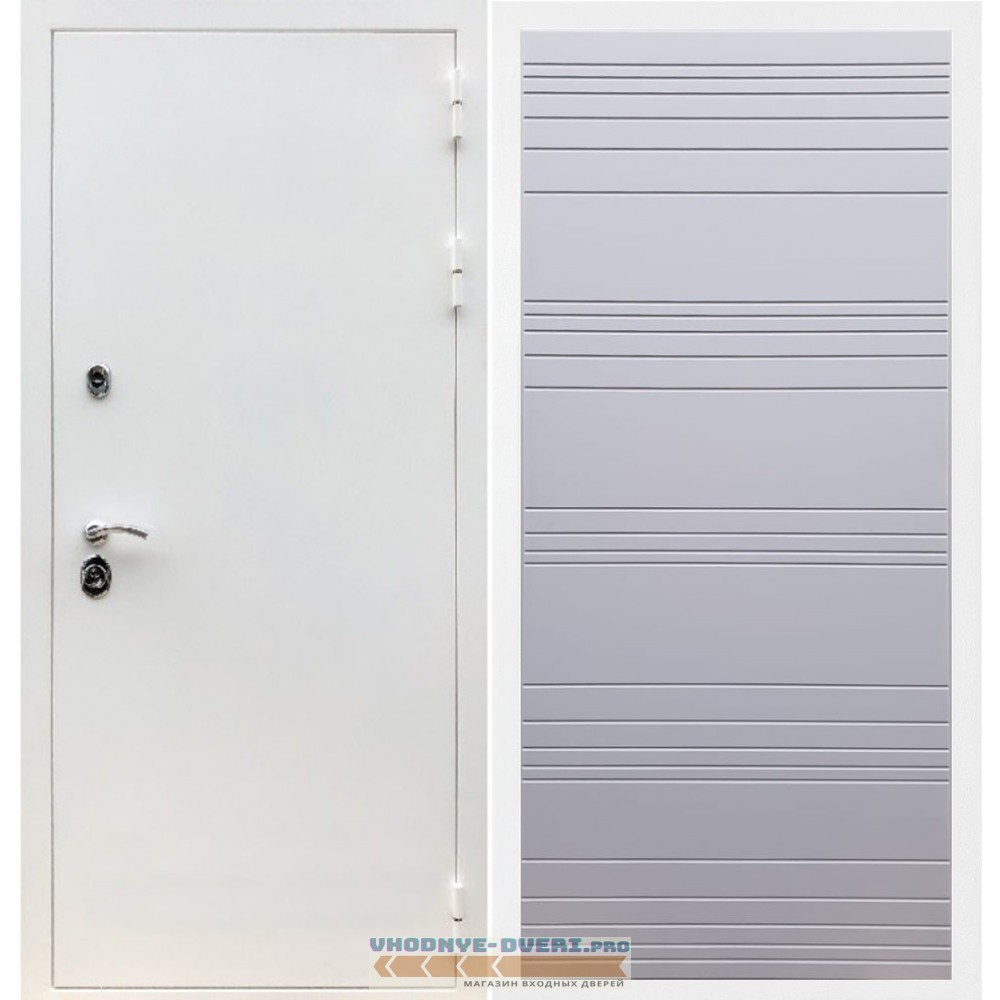 Входная дверь REX (Рекс) 5 белая шагрень полоски горизонтальные силк титан