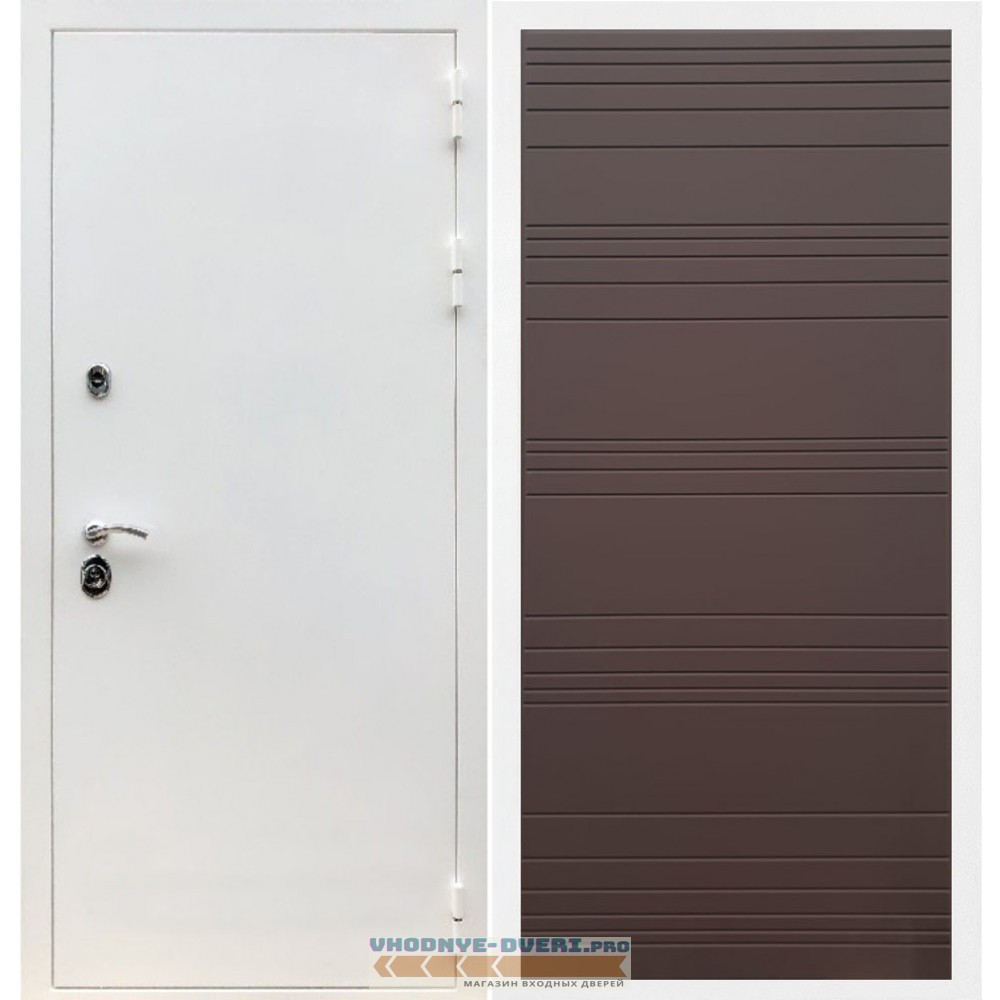 Входная дверь REX (Рекс) 5 белая шагрень полоски горизонтальные ясень шоколадный