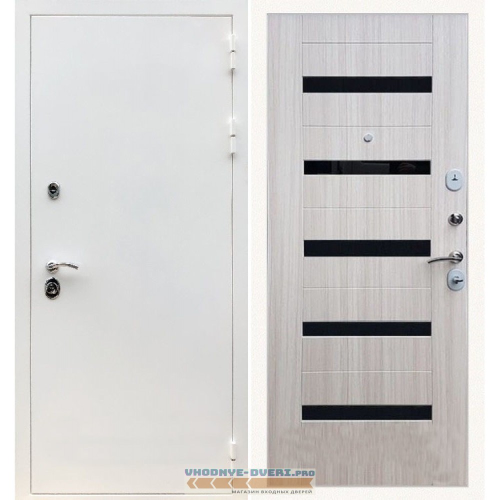 Входная дверь REX (Рекс) 5 белая шагрень СБ-14 сандал светлый черное стекло