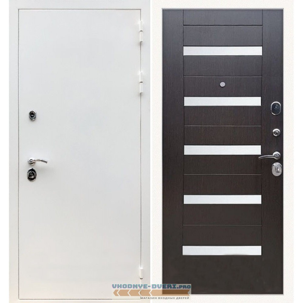 Входная дверь REX (Рекс) 5 белая шагрень сб-14 венге белое стекло