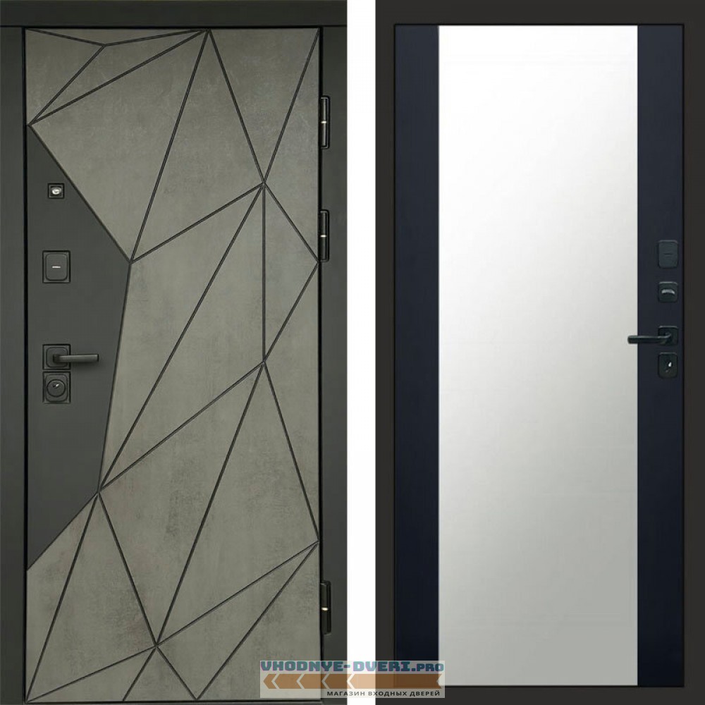 Входная дверь Геометрия Бетон Зеркало черный кварц+тонировка