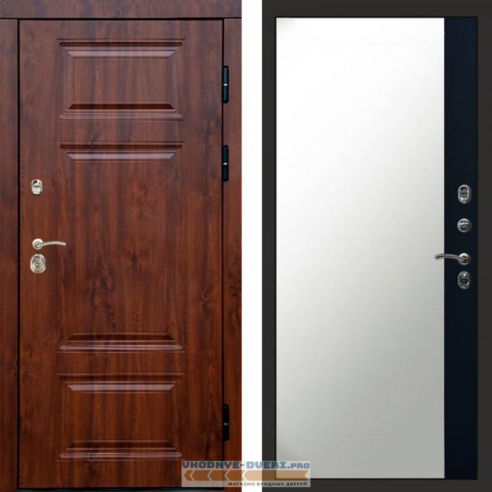 Входная дверь Премиум дуб Зеркало фацет черный кварц