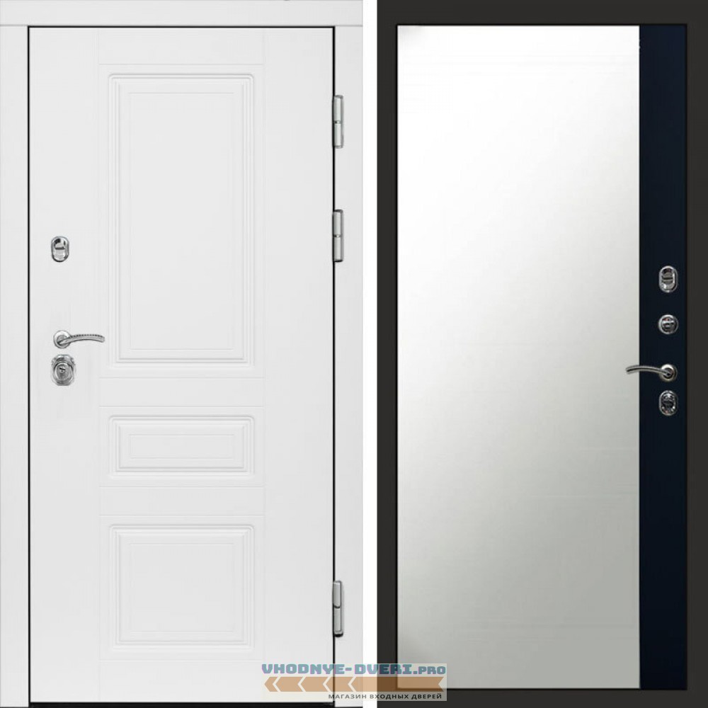 Входная дверь Орегон White Зеркало фацет черный кварц